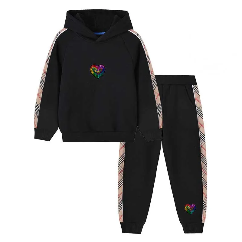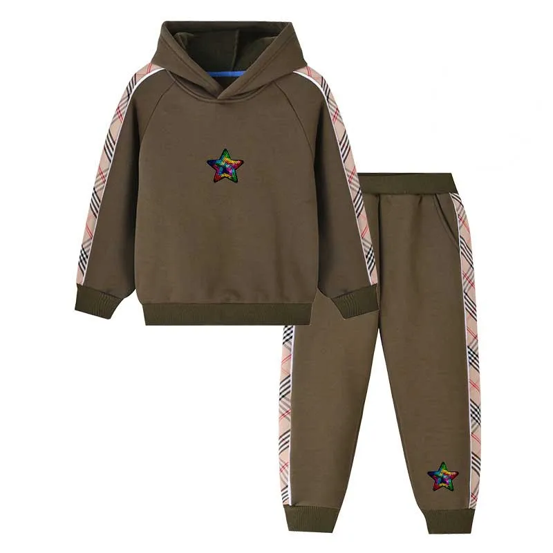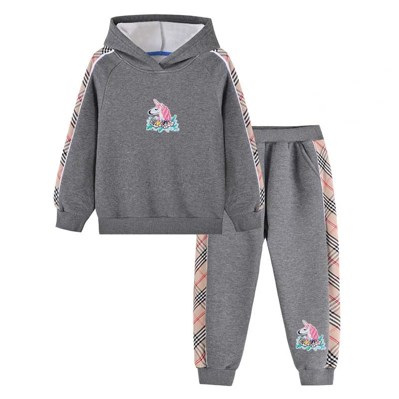 Wholesale Composite Velvet Winter Pullover Hoodies Two Piece Children's Clothing Set for Girls